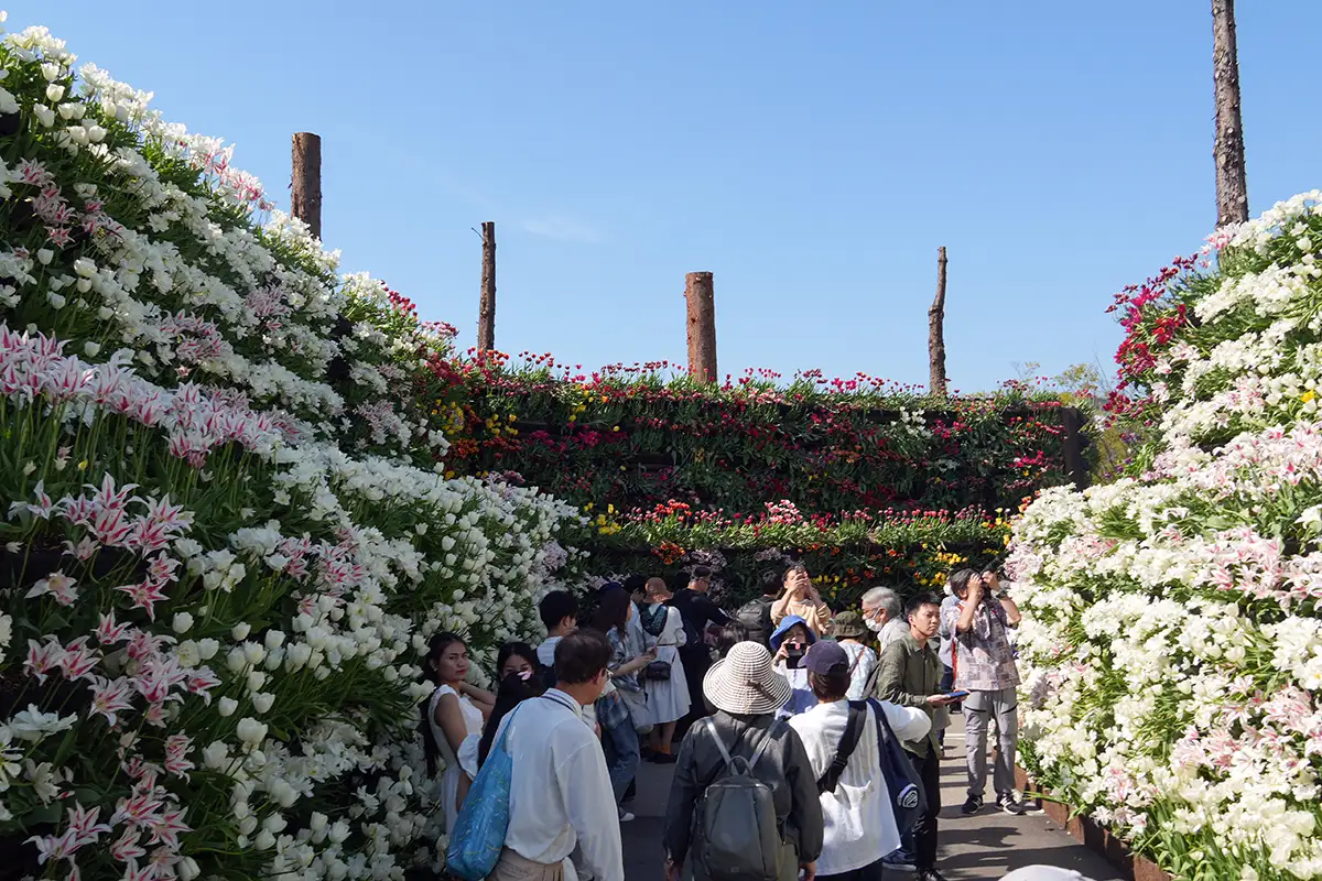一番の見どころは、立山の「雪の大谷」を模した「花の大谷」です。
