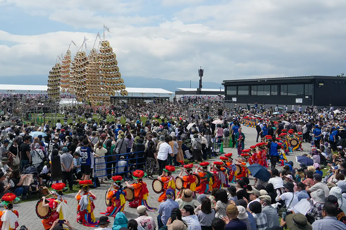 東北六県持ち回りで毎年開催場所が変わる。東北開催時は会場設営、警備上の想定を超える多くの来客が訪れ、撮影どころではない状態になる年がある。25年の関西万博では、会場内で最も客の入込が少ない最奥部で開催されたため、逆にスムーズだった。